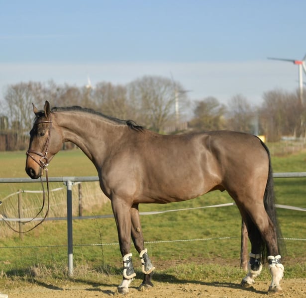 **Beeindruckendes Springpferd Perley JRV ** Zum Verkauf steht ein herausragendes Springpferd mit einer beeindruckenden Größe von 1,87 m, das durch seine hohe Qualität und Sprungkraft besticht. Dieses talentierte Tier hat bereits erfolgreich an Turnieren teilgenommen und zeigt sich unter dem Sattel stets brav und zuverlässig. Wir sind überzeugt, dass er auch als Voltigierpferd eine hervorragende Figur machen könnte, auch wenn er in diesem Bereich noch keine Erfahrung hat. Dressurmäßig ist er gut ausgebildet und zeigt auch beim Freispringen sein volles Potenzial – Sprünge bis 1,55 m meistert er mit Leichtigkeit und Eleganz. **Abstammung:** Sein Pedigree spricht für sich: Über den Vater Grandorado TN und den Muttervater Indoctro bringt er eine erstklassige Abstammung mit, die sich in seiner Leistung widerspiegelt. ### **Besonderes Angebot:** Bei sofortiger Mitnahme erhalten Sie einen Rabatt von 5% auf den Verkaufspreis! ### **Testmöglichkeit:** Nutzen Sie die Gelegenheit, dieses außergewöhnliche Pferd eine Woche lang bei uns zu testen. Die Probewoche kann von erfahrenen Trainern begleitet werden, und Sie haben die Möglichkeit, eine Kombination aus Unterricht und Testen zu buchen. Bitte beachten Sie, dass dies mit einer Probegebühr verbunden ist, die nicht vom Kaufpreis abgezogen wird. ### **Probereiten:** Gerne können Sie das Pferd bei uns kennenlernen. Die Kosten für das Vorreiten/Vorführen oder Probereiten betragen 30 € pro Person. Lassen Sie sich diese Chance nicht entgehen! Dieses Pferd könnte Ihr neuer Partner im Sport werden. Kontaktieren Sie uns für weitere Informationen und zur Vereinbarung eines Termins.