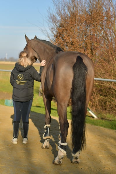 **Cheval de saut impressionnant Perley JRV** À vendre, un cheval de saut exceptionnel mesurant 1,87 m, remarquable par sa qualité supérieure et sa puissance de saut. Cet animal talentueux a déjà participé avec succès à des compétitions et se montre toujours calme et fiable en selle. Nous sommes convaincus qu’il pourrait également exceller en voltige, même s’il n’a pas encore d’expérience dans ce domaine. Sur le plan dressage, il est bien entraîné et montre tout son potentiel lors du saut en liberté – il franchit aisément et avec élégance des obstacles jusqu’à 1,55 m. **Origines :** Son pedigree parle pour lui : par son père Grandorado TN et son grand-père maternel Indoctro, il possède une lignée de premier ordre, reflet de ses performances. ### **Offre spéciale :** En cas d’achat immédiat, bénéficiez d’une remise de 5 % sur le prix de vente ! ### **Possibilité d’essai :** Profitez de l’occasion de tester ce cheval exceptionnel pendant une semaine chez nous. La semaine d’essai peut être accompagnée par des entraîneurs expérimentés, et vous avez la possibilité de combiner cours et essais. Veuillez noter qu’une participation aux frais d’essai sera demandée, celle-ci ne sera pas déduite du prix d’achat. ### **Test de monte :** Nous serions ravis de vous faire connaître le cheval. Les frais pour une mise en selle ou une présentation lors d’un essai s’élèvent à 30 € par personne. Ne laissez pas passer cette opportunité ! Ce cheval pourrait devenir votre nouveau partenaire en compétition. Contactez-nous pour plus d’informations et pour fixer un rendez-vous.