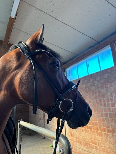 For sale is a healthy 7-year-old KWPN gelding suitable as a leisure horse. Never bitten, never kicked. Compatible with other horses. Shy but very well-behaved in handling. Always very alert when riding. Not suitable for beginners. No problem going out on rides. Loading still needs some reinforcement. Full shoeing. Never been ill. Health certificate can be arranged with your own veterinarian and done at your expense. Teeth checked twice a year. Regularly checked and treated by an osteopath. A new saddle can be purchased for an additional €2000. Fully vaccinated. Unfortunately, we are not the right match, as he is very sensitive and I tend to be more anxious, which he cannot handle. Our characters simply do not match, and neither animals nor humans can be trained to change their nature. Very gentle to ride. Occasionally grinds his teeth under stress, but this has decreased significantly. A calm home with little hustle and bustle and no big competition ambitions would be ideal. Trial ride €30, which will be deducted from the purchase price. Priority goes to the well-being of the horse. The horse is sold with complete accessories (except saddle): Winter blankets Cooling sheet Headcollar Girths / Bandages / Saddle pads Bridle (without bits)