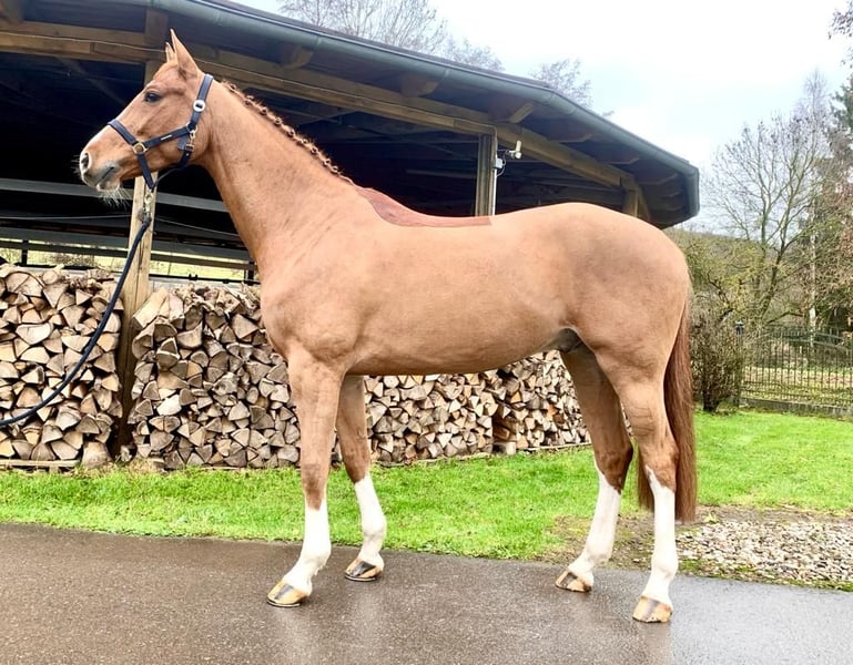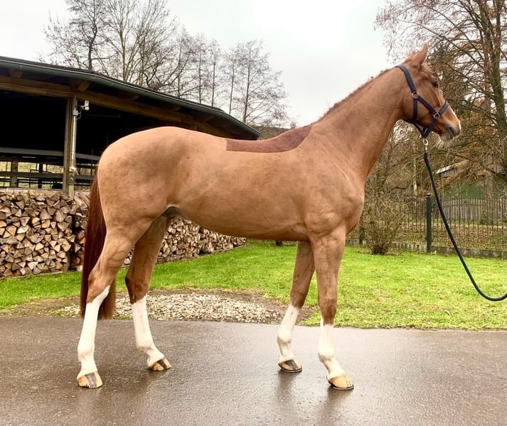 Very eye-catching and beautifully drawn Younster who combines the world-class sires Cornet Obolensky, Stakkato, Contender, Chi Chin, Emilion and many more. At his first tournament starts, he was able to win Sprpf. A** (1.10m) several times and placed second in Sprpf. L (1.20m). He has a very good rideability and has three very good basic gaits. He has a pleasant pull to jump and very good reflexes. He is very well-behaved and very pleasant in his daily work. A top athlete for the coming season. Phone: 49 (0) 171/4605744