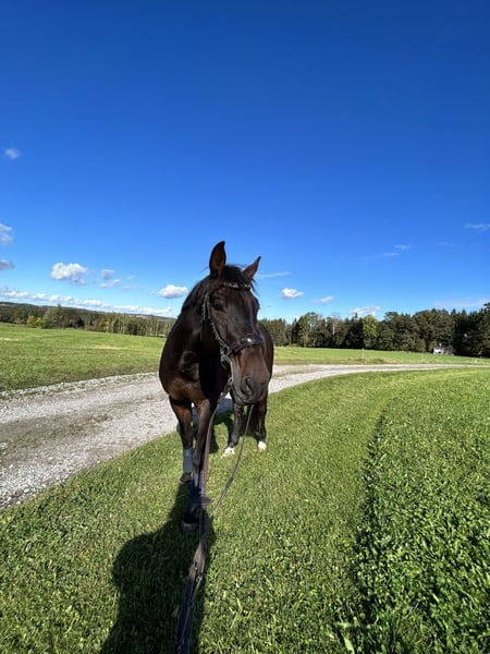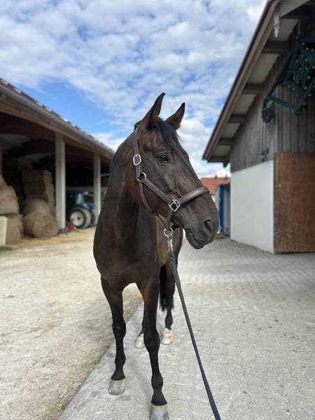 Charlie ist ein absolut liebenswerter Wallach, der im Umgang ein echter Schatz ist. Besonders mit Kindern zeigt er sich super brav – egal ob beim Putzen oder wenn sie mal auf ihm sitzen. Außerdem liebt er Ausritte ins Gelände und genießt die Abwechslung sehr. Wir wünschen uns für ihn ein Zuhause mit viel Auslauf, wo er die „Nummer 1“ sein darf. Im Sport ist er bis Springpferde L platziert und hat auch schon M-Erfahrung. Beim Springen braucht Charlie jedoch einen routinierten Reiter, der ihn mit Gefühl und Erfahrung begleitet. Unser größter Wunsch wäre ein Platz, wo er als Freizeitpferd mit einem guten Reiter viel Freude, Bewegung und Zuwendung bekommt. Charlie ist ein Pferd mit eher mehr Go, deswegen nicht für Anfänger geeignet.