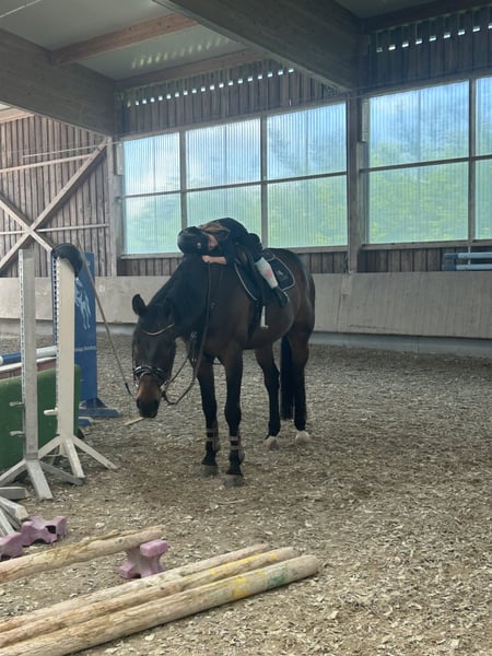Charlie is an absolutely lovable gelding who is a real treasure to handle. He is especially well-behaved with children – whether it's during grooming or when they sit on him. He also loves trail rides and greatly enjoys the variety they offer. We are looking for a home for him with plenty of turnout, where he can be the "number 1." In competitions, he has placed up to show jumping level L and also has experience at level M. However, Charlie needs a seasoned rider when jumping, someone who can guide him with sensitivity and experience. Our greatest wish is to find a place where he can be a leisure horse, receiving plenty of joy, exercise, and attention from a good rider.