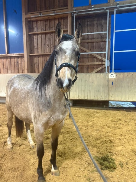 Zum Verkauf steht eine wunderschöne Leonharder Stute der F2-Generation, geboren im Jahr 2023. Sie ist eine elegante Falbstute mit einem aktuellem Stockmaß von 153 cm und somit ideal für Freizeitaktivitäten geeignet. Die junge Stute besticht durch ihr freundliches Wesen und ihre angenehme Art, was sie zu einer tollen Begleiterin für Reiter aller Erfahrungsstufen macht. Chanel wächst artgerecht im Herdenverband auf und genießt den Umgang mit Menschen. Sie ist noch nicht gearbeitet, aber gut sozialisiert und freut sich auf eine neue Familie, die viel mit ihr unternimmt. Ob Ausritte, Spaziergänge oder einfach nur gemeinsame Stunden im Gelände – diese Leonharder Stute wird Sie begeistern! Bei Interesse oder für weitere Informationen stehe ich gerne zur Verfügung. Kontaktieren Sie mich für einen persönlichen Eindruck!