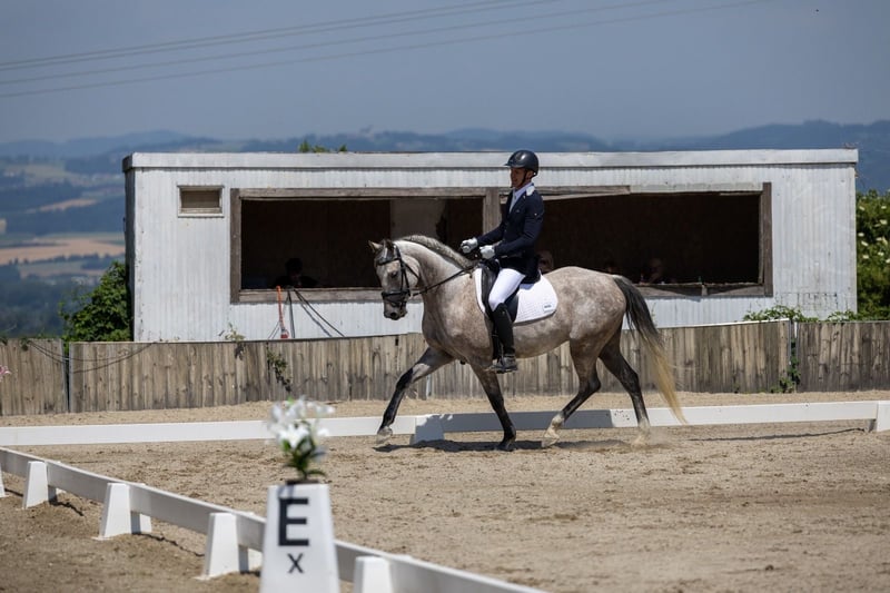 Talentierter Warmblutwallach mit korrektem Exterieur. Überzeugt mit drei sehr guten Grundgangarten. Airo ist sehr leistungsbereit und willig. Er konnte in seinem ersten Turnierjahr bereits erste Erfolge in der Dressur A und L erzielen. Derzeitiger Ausbildungsstand L/M. Besonders hervorzuheben ist seine Leichttrittigkeit und feine Anlehnung. Mit seiner Qualität bringt er alles mit, was man für eine erfolgreiche Karriere im Dressurviereck benötigt. Airo ist ein modernes, geländesicheres Sportpferd, welches weiter gefördert werden möchte. Airo ist selbstverständlich regelmäßig dem Schmied vorgestellt, zahnärztlich kontrolliert und behandelt, sowie ordnungsgemäß entwurmt und geimpft. Er ist außerdem verladefromm und zeigt sich im täglichen Umgang sehr unkompliziert.
