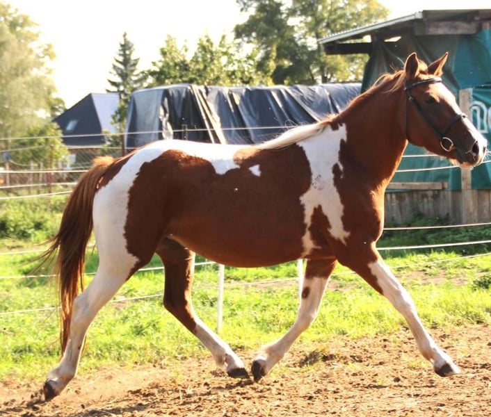 ✨ 3-jährige Lewitzer Stute zu verkaufen ✨ Da unsere Tochter doch kein Interesse am Reiten hat, suchen wir für diese tolle junge Stute ein neues Zuhause. Sie ist aufgeweckt und neugierig, liebt aber genauso ihre Kuscheleinheiten. Aufgrund ihres Alters ist sie jedoch noch kein reines Kinderpony, kennt aber den Umgang mit Kindern – ein kleiner, ponytypischer Dickkopf ist vorhanden und sie hat noch vieles zu lernen. Daten & Ausbildungsstand: -Alter: 3 Jahre - Farbe: Fuchs-Schecke -Stockmaß: aktuell ca. 1,44 m (hinten gerade leicht überbaut) -Bisher nur leicht anlongiert; Longiergurt, Pad und Trense kennt sie -wird daher aber als roh abgegeben -Haltung: altersgemischte Stutenherde, Offenstall mit Weidezelten, ganzjährig draußen -Regelmäßig geimpft & Hufpflege -Anhängerfahren problemlos Abstammung: Mutter: Princess Mabel (v. Pit / Peter I; Urban) Vater: Granit (Grandy, Bundesprämiensiegerhengst x St. Pr. Giny von Shamani) Beide Elterntiere können bei uns auf dem Hof besichtigt werden Wer Lust hat, dieses charmante Jungstute zu fördern, ist herzlich eingeladen, vorbeizukommen, sie kennenzulernen – und sich direkt zu verlieben. Infos & Fragen gerne telefonisch oder per WhatsApp: 0176 – 78879276