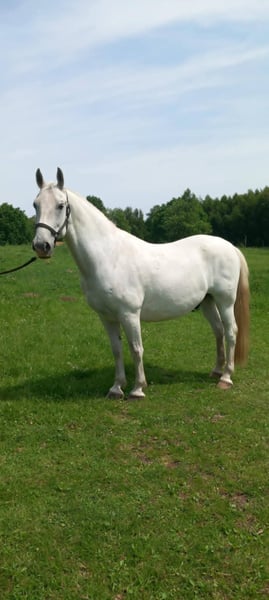 Beautiful 10‑year‑old Lipizzaner gelding (Maestoso line), 160 cm / 15.3 hh. Basic ridden: walk, trot, canter, steering, stopping. Used mainly for relaxed trail riding. Intelligent, social, people‑oriented, and ready for further dressage schooling. ✔️ Key Details - Breed: Lipizzaner (Maestoso line) - Age: 10 - Height: 160 cm / 15.3 hh - Training: Basic ridden, ideal for dressage development - Temperament: Friendly, smart, easy to handle - Use: Dressage potential, leisure riding, classical training - Health: Passport, vaccinated, regularly checked - Housing: Outdoors 24/7 with shelter Reason for Sale No time to continue his training. He deserves an owner who can develop his potential. Transport International transport available. Price: £3477 📍 Location: Strabane, Northern Ireland 📞 WhatsApp (Direct Message): +44-74769-51466