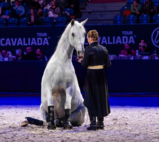 Siglavy is a 13-year-old gray Lipizzaner gelding. He stands 161 cm tall and exhibits top-level movement. This horse is a true artist and a unique top model. He is an experienced horse (performing piaffe, passage, pirouettes, half-passes, flaying changes, spanish walk, and lay down). Siglavy works freely and can perform lay down, sit down, and rear up. He would be an ideal opportunity for an experienced rider or ambitious amateur to learn elements and groundwork. He is a dream horse. A beautiful, friendly, and calm horse with great patience. Located in Poland 🇵🇱 Pyraphrot-free He has up-to-date X-rays. For more information, please send me a private message or contact me on WhatsApp at 0048609466153