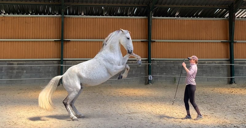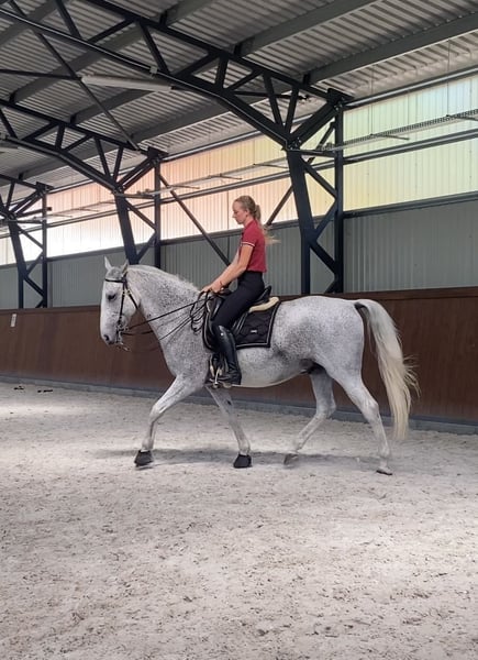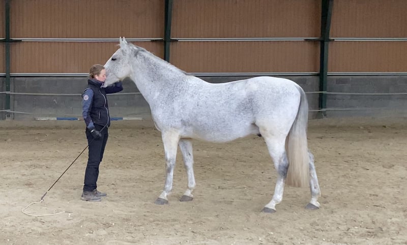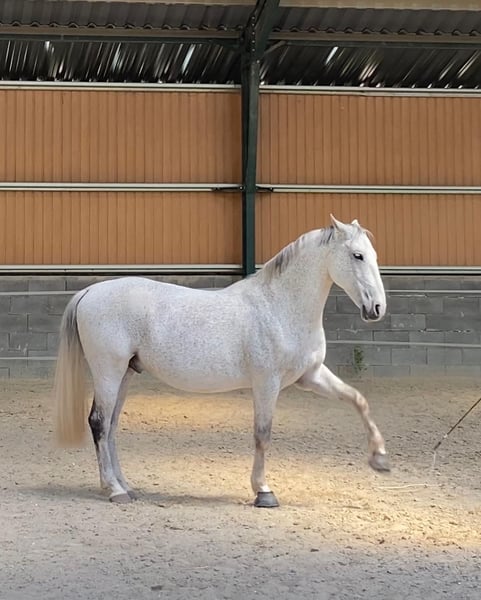 Nikkel es un caballo gelding Lipizzaner amable, bien educado y completamente libre de malicia. Es un caballo refinado y sensible, por lo que no se recomienda para principiantes. Ha sido entrenado por mí desde los tres años, siguiendo los principios de la escuela clásica francesa. Compitió en Equitación de Trabajo hasta el nivel L y realiza con facilidad todos los movimientos laterales en los tres aires. En trabajo en tierra (Parelli, libertad), está bien preparado: puede piafar a la orden, está aprendiendo el paso español y realiza shoulder-in, haunches-in y medio pase desde el suelo. Sería un compañero perfecto para un jinete de ocio dedicado, competidor en Equitación de Trabajo o entusiasta de la doma clásica. Nikkel es fácil de manejar, se lleva bien con otros caballos y siempre evita conflictos. Actualmente está en semi-pastoreo con tres compañeros. Lleva herraduras en las delanteras; sus vacunas y análisis de sangre están al día.