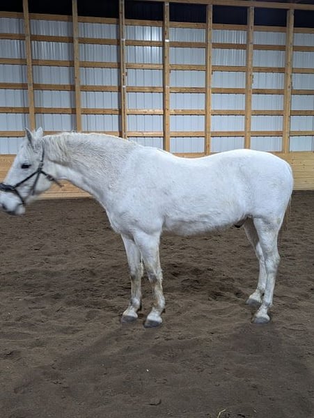 Elegant 7 year old sport-type lipizzaner gelding, 14.3 HH. Extensive groundwork; 1.5 years under saddle, confirmed walk, trot, canter. Needs to be restarted.