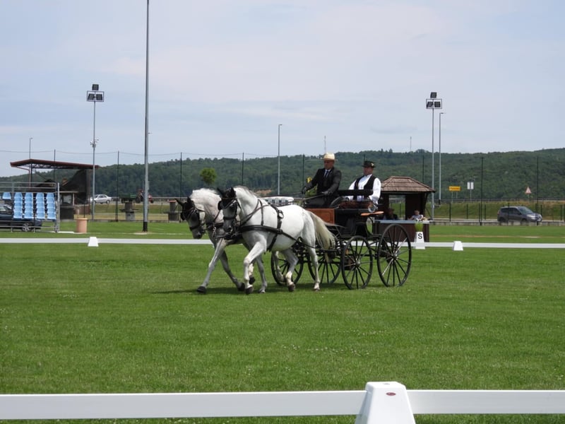 We are offering two beautiful Lipizzaner geldings – Conversano (9 years old) and Neapolitano (8 years old) – both calm, gentle, and exceptionally well-mannered horses. 🟢 About Them: Bloodlines: Lipizzaner stallion lines Conversano & Neapolitano Age: 9 y/o (Conversano) & 8 y/o (Neapolitano) Character: Extremely calm, safe and attentive, wonderful with people and children Experience: Competed in FEI Driving Competitions (3-day events) Participated in National Driving Cups Regularly involved in touristic and cultural events Training: Experienced in single and pair driving (one-in-hand & pair) Basic riding trained Health: Completely healthy, no bad habits, with valid FEI passports Lifestyle: Live 24/7 outdoors, very social, good with other horses 📍 Location: Vinkovci, Croatia 🚚 Transport can be arranged. These two impressive Lipizzaners are not only beautiful representatives of their breed but also trustworthy and versatile partners. 📩 For more information and inquiries, please contact us directly, 003850981959191 (viber, whatapp)