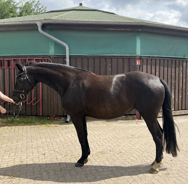 Despacita is very pleasant to ride and has a wonderful temperament. She boasts three excellent basic gaits and jumps beautifully. In the show jumping course, she is highly motivated and always eager to reach the other side. She is not spooky at jumps and has a good amount of go. In handling, she is very sweet and gets along well with other horses. She is familiar with stables, open stalls, and 24/7 turnout. She is not suitable for casual leisure riders or beginners, as she enjoys working and needs to be exercised 4-5 times a week. Also very interesting for breeding purposes. Registered in Mecklenburg and has already produced an elite foal there. Trade possible; please offer horses from 3 years old and at least 16.0 hh. Farrier and loading are no problem. Videos available upon request.