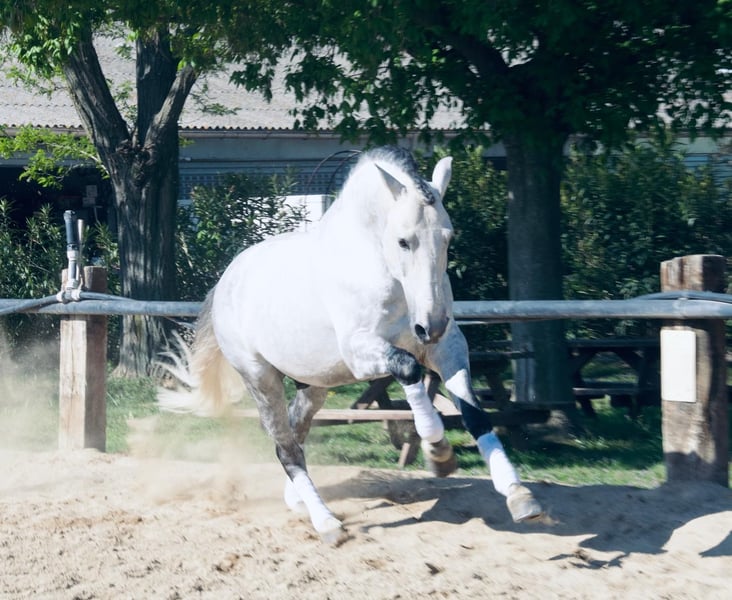 Junio, ein edler Lusitano mit Noblesse, Technik und Gelassenheit. Dieser wunderschöne 11-jährige Hengst begeistert durch sein vorbildliches Wesen, seine Großzügigkeit und seinen Komfort unter dem Sattel. Als Sohn von Alecrim SS und E Nabo HP zeigt er eine elegante und harmonische Bewegungsführung und entwickelt sich derzeit mühelos auf Niveau Saint-Georges. Er beherrscht den Passage, die Pirouetten sowie die Zwei-Tempi-Wechsel, außerdem die Bodenarbeit (Reverenz, Platzlegen, Spanischer Schritt). Vielseitig und zuverlässig ist Junio sowohl für einen erfahrenen Reiter als auch für einen Nachwuchsreiter geeignet, der sich auf höherem Niveau weiterentwickeln möchte. Ein Pferd voller Herz und Talent, gleichzeitig beeindruckend und beruhigend, bereit, eine schöne Partnerschaft mit seinem zukünftigen Reiter einzugehen.