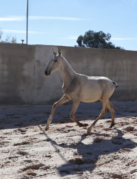 VALETE – Strahlender Buckskin-Absetzer mit Spitzen-Abstammung Merkmale: - Rasse: Lusitano - Geschlecht: Hengst - Geburtsjahr: 2025 - Farbe: Buckskin - Stockmaß: Endstockmaß geschätzt 164cm Vater: ADÁGIO • Mutter: hoch gekört • Gen-getestet ⸻ 🌟 Besonderes Exterieur & Genetik VALETE ist ein typvoller Buckskin-Hengstabsetzer aus 2025, dessen Farbgenetik bereits bestätigt ist. Sein glänzendes Fell und seine harmonischen Linien machen ihn jetzt schon zu einem echten Hingucker. • Buckskin – genetisch getestet • Kräftiges Fundament und sehr gute Gliedmaßen • Ausgeglichenes, korrektes Exterieur ⸻ 🧬 Hochkarätige Abstammung Vater: ADÁGIO – international erfolgreich in der Working Equitation und Stierkampfarbeit, klarer Kopf, enorme Rittigkeit und unglaubliche Nervenstärke. Mutter: korrekt gebaut, hoch gekört, besonders brav und leistungsbereit. Diese Anpaarung garantiert Klarheit im Kopf, beste Voraussetzungen für Sport & Freizeit, sowie ein hohes Talent für Working Equitation. ⸻ 🧠 Charakter & Aufzucht VALETE zeigt sich bereits jetzt als besonders gelassener, neugieriger und gut zu handelnder junger Hengst. • Lässt sich problemlos anfassen • Zeigt einen klaren, unerschütterlichen Charakter • Lebt artgerecht im Herdenverband auf dem Campo • Kennt verschiedene Untergründe und wächst robust & gesund auf ⸻ 🏅 Perspektive Mit seiner Abstammung, seinem Exterieur und seinem Wesen bringt VALETE alles mit, um später ein leistungsstarker Sportpartner oder ein solider, nervenstarker Freizeitkumpel zu werden. ⸻ 📩 Kontakt Gerne sende ich weitere Fotos und Videos oder beantworte offene Fragen. VALETE kann ab sofort reserviert werden.