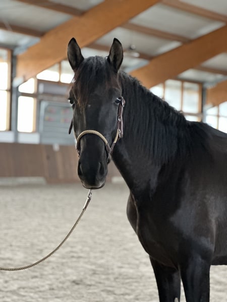 Urim, auch liebevoll Urmel genannt, unser tiefschwarzer Lusitano Rapp Hengst sucht seinen Menschen. Im April 2024 ist er geboren und misst derzeit schon 154 cm. Das geschätzte Endmass beträgt 165 cm. Zur Zeit sieht er ein bisschen so aus, als wenn er noch nicht in den Anzug passt…aber das wird kommen und er wird ein wunderschöner großer Rappe. Aufgrund von Bestandsverkleinerung suchen wir für Urim seinen Herzensmenschen. Er möchte die Welt pferdegerecht und liebevoll kennenlernen. Im Umgang ist Urim dem Menschen sehr zugewandt und liebt es geputzt zu werden. Derzeit lebt er mit seinem Bruder und 2 Wallachen im Herdenverband. Gibt artig beim Schmied alle 4 Hufe und lernt schnell. Aufgrund des Alters empfehlen keine reine Boxenhaltung und Kontakt zu gleichaltrigen oder eine gut sozialisierte Herde. Der Charakter lusitanischer Pferde ist einzigartig. Sie sind unglaublich schlau und wollen gerne gefallen. Sie lieben die Zusammenarbeit mit ihrem Menschen wenn sie eine Sprache sprechen. Er ist bei der APSL registriert und hat ein blaues Buch.