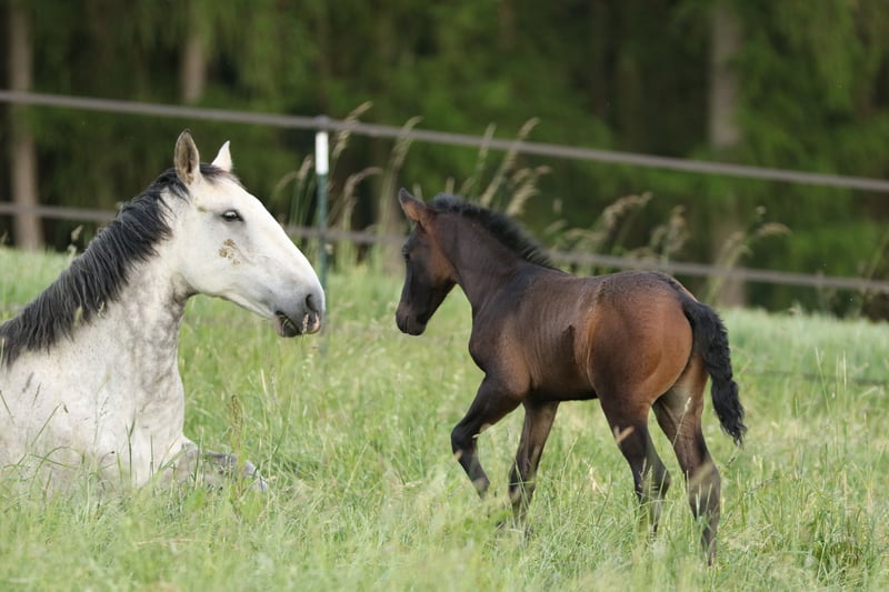 Tiago (geb. 20.05.2023) ist ein super interessierter, mutiger und aufgeschlossener Junghengst mit allerbesten mentalen und physischen Voraussetzungen. Wenn es etwas zu sehen / zu entdecken gibt, ist Tiago vorne dabei. Ein sehr draufgängerisches, dabei aber trotzdem immer aufmerksames und bedachtes Wesen. Tiago wird gut mittelgroß werden. Er hat einen kompakt kräftigen Körper mit stabilem (nicht zu verwechseln mit grob oder plump) Fundament. Voraussichtlich bleibt Tiago dunkelbraun. Er wächst (wie alle Junghengste) in unserer Junghengstherde auf. Zur weiteren Aufzucht und/oder späteren Grundausbildung/Beritt kann er gerne hier bleiben. Aktuellere Fotos folgen in Kürze. Hier der Link zu Tiago PSL direkt auf unserer Website: https://yeguada-armin-rahn.de/tiago/