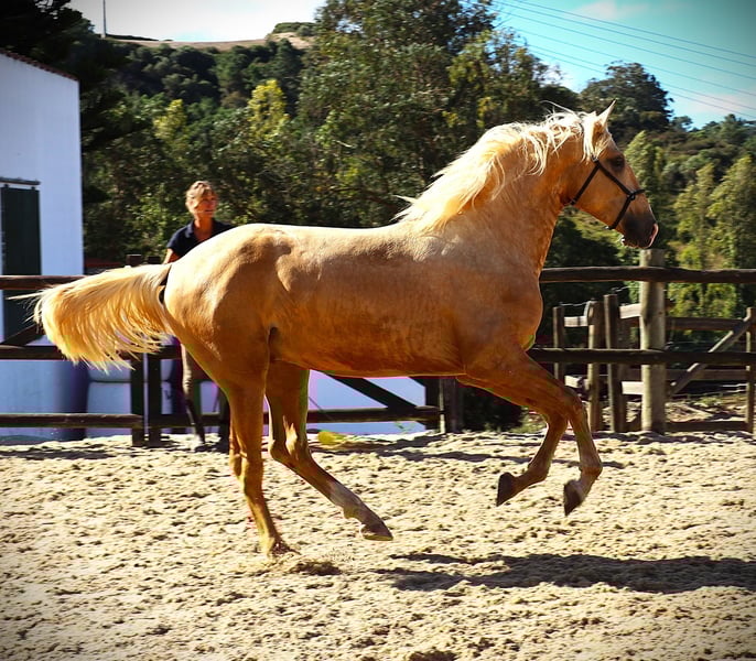 Top Gun SR ist aus eigener Zucht und waechst auch hier in meiener Coudelaria SR auf , draussen ,auf Weide ,in der Gruppe., natuerlich mit bestem Aufzuchtfutter zweimal taeglich, regelmaessiger Schmiedkontrolle . Er ist definitiv das beste Fohlen der letzten Jahre meiner Zucht. Gross, korrekter Koerperbau, gut im Umgang, korrekte Gaenge. Er wurde bereits einmal erfolgreich vorgestellt an der Hand ,kennt daher reisen , verladen, fremde Box ,Tuernierplaetze usw. Preisreduzierung aus persoehnlichen Gruenden