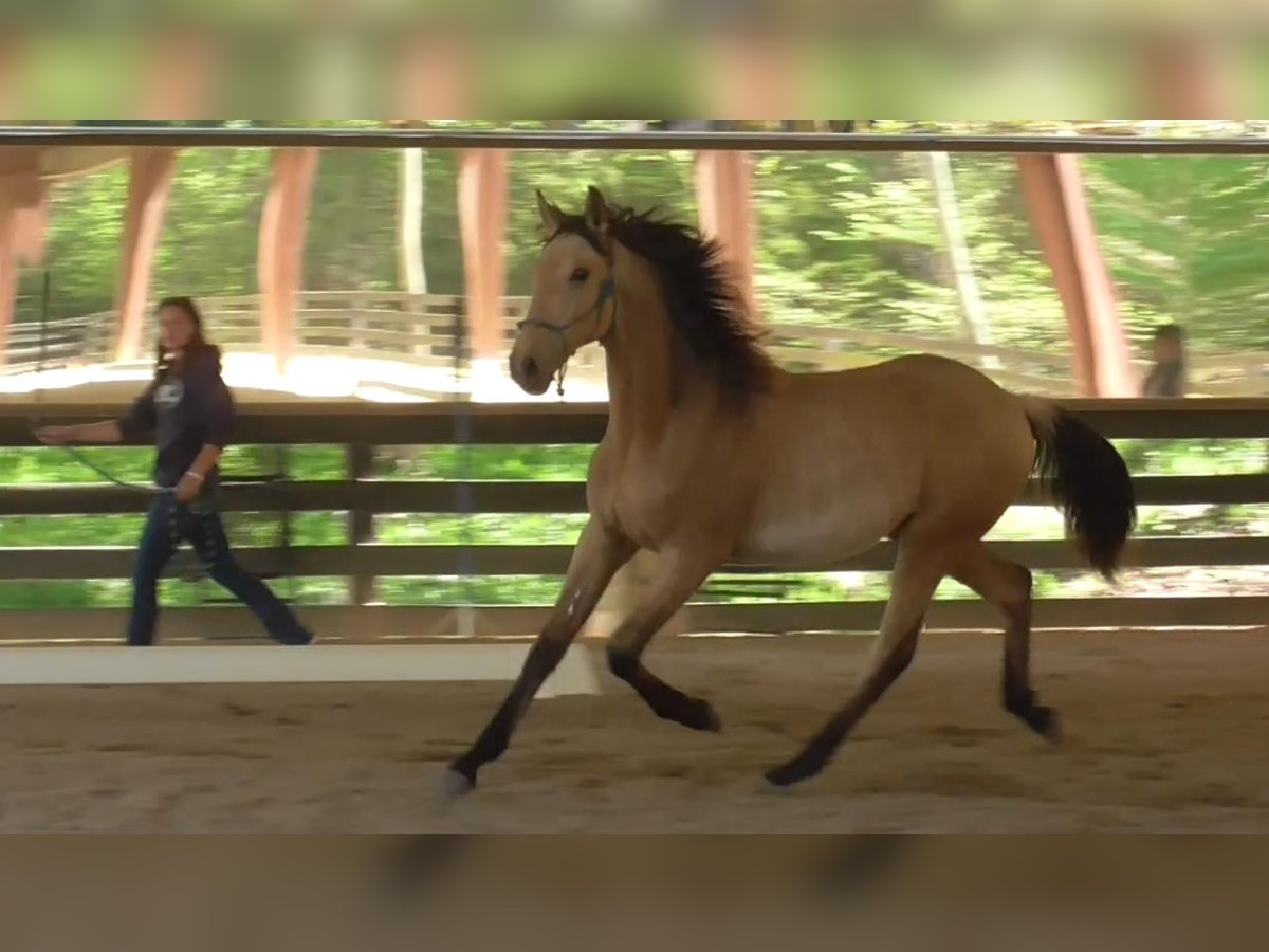 SOLD! Dressage Iberians presents USHER: 2024 APSL Buckskin Gelding This stunning buckskin APSL Lusitano yearling stud colt is sired by Lider Seven, the recommended breeding stallion by the Portuguese stud book and the #1 Lusitano in the USA. Here is your FEI partner! Usher 's breathtaking movement and presence is something to behold. Often we get requests from serious dressage enthusiasts that want an Iberian mind with WB movement. This is your dreamhorse! USHER is built to dominate the dressage court with his exquisite gaits and impressive suspension. We have high expectations for this dream colt with a calm demeanor and extravagant suspended gaits. No doubt he has all the qualities for a Grand Prix Competition partner. He is steady, calm, not reactive or spooky, good for the farrier, grooming, and leading. Has gone for long walks on the property away from his herd and is super confident. Super tall, expected to exceed over 17H at maturity. Located near Athens, GA. Dressage Iberians dot com Inquire for the video links! Sired by Lider Seven, recommended APSL Grand Prix competitor and #1 Lusitano in the USA