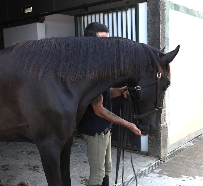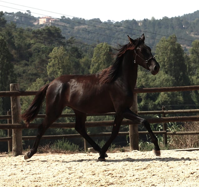 ma bardzo czysty, jest dobrze traktowany, jeszcze surowy. Koń o dobrym charakterze, wciąż w pełnym rozwoju. Bezpośrednio od hodowcy.