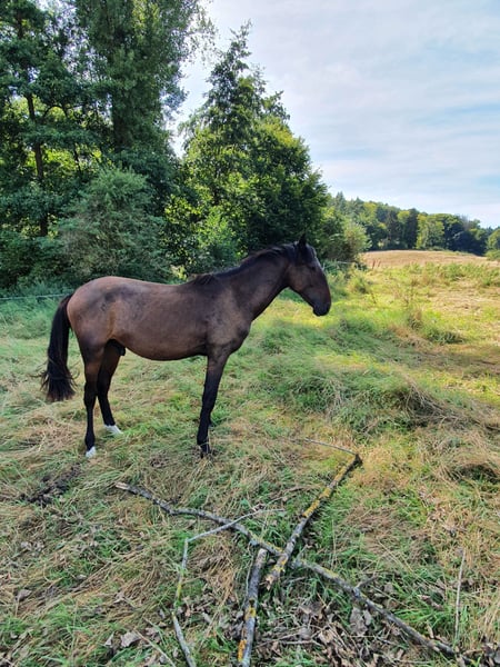 Hübscher, typvoller, gross werdender Gentleman (beherrscht schon Fohlen ABC), mit Top Abstammung (Vater: Gran Prix Pferd, Zucht: Dressage plus x Mutter: internat. Goldmedalliengewinnerin, auf Gangwerk 13,5Pkt.), schw.br., gesund, piropl. frei, nur in beste Hände abzugeben