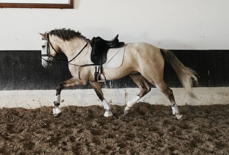 Dieser wunderschöne 4- jährige Lusitano-Hengst ist ein echter Blickfang mit seiner schönen, auffälligen Farbe und seinen kraftvollen Bewegungen. Seine eleganten Gänge, kombiniert mit natürlicher Kraft und Balance, machen ihn zu einem hervorragenden Kandidaten für die Dressur. Mit viel natürlicher Kraft und Rhythmus eignet er sich sowohl für die sportliche als auch für die klassische Dressurausbildung oder für die Working Equitation. Abgesehen von seinem beeindruckenden Talent hat er einen sehr liebenswürdigen und sensiblen Charakter, mit dem es eine Freude ist, mit ihm zu arbeiten! Er ist unglaublich reaktionsschnell und einfach im Umgang, was ihn zu einem idealen Partner für einen Reiter macht, der auf der Suche nach einem Pferd ist, das sowohl Potenzial als auch einen freundlichen Charakter hat. Auch in der freien Arbeit ist er sehr engagiert. Egal, ob Sie eine Zukunft im Dressurviereck anstreben oder einfach nur einen zuverlässigen, schönen Partner suchen, dieser Lusitano-Hengst wird Sie sicher beeindrucken. Kontaktieren Sie mich für weitere Informationen oder die Ahnentafel und um einen Besichtigungstermin zu vereinbaren. Ich arbeite jeden Tag mit diesem süßen Jungen und kann Ihnen mehr Details geben.