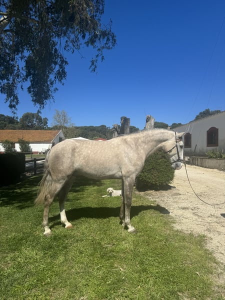 This beautiful 3-year-old Lusitano stallion is a true eye-catcher, with his beautiful striking color and powerful movement. His elegant gaits, combined with natural strength and balance, make him an excellent prospect for dressage. With a lot of natural power and rhythm, he’s well-suited for both competitive and classical dressage training or for working equitation. We are starting him under the saddle very slowly. Just the basic gates :) Beyond his impressive talent, he has a very sweet and sensitive character, making him a joy to work with. He’s incredibly responsive and easy to handle, which makes him an ideal partner for a rider looking for a horse with both potential and a kind character. Whether you’re aiming for a future in the dressage arena or simply want a reliable, beautiful partner, this Lusitano stallion is sure to impress. Contact me for more information or the pedigree and to schedule a viewing. I work with this sweet boy every day and I can give you more details.
