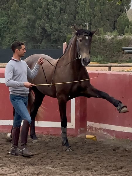 ✨SALGUEIRO: SEHR IMPOSANTER PSL-HENGST MIT TOP-PEDIGREE / VERY IMPRESSIVE PSL STALLION WITH EXCELLENT PEDIGREE✨ Rasse: Pura Sangre Lusitano 🇵🇹 Geschlecht: Hengst Alter: Geboren 02/2022 Größe: 1,62 m Ausbildung: Traversale, Piaffe, Passage, Spanischer Schritt Standort: Valencia, Spanien ✔️ Vollständig untersucht mit allen Röntgenaufnahmen Salgueiro ist ein vierjähriger PSL-Hengst mit ausgeglichenem Temperament und großem Potenzial für die Dressur sowie die Working Equitation! Er ist ein fleißiger Arbeiter, besitzt einen klaren Kopf und möchte seinen Reiter stets begeistern. Er ist Sohn des berühmten PSL-Hengstes Don Juan de Cabecau, der die klassische, barocke Typologie mit modernen Bewegungen verbindet – ideal für die klassische Dressur! Sein Halbbruder ist der FEI-Hengst Imperador D‘Cabecau. Sein Großvater mütterlicherseits ist ebenfalls eine bedeutende Figur in der Zucht: Almasor, bekannt für die Zucht leistungsfähiger Nachkommen, von denen einige im Dressursport und in der Zucht aktiv sind. Er ist in internationalen Pedigree-Datenbanken für seine Abstammung und Zuchtqualität anerkannt und trägt zum Ruf der Rasse für Beweglichkeit und Intelligenz bei. Salguero stammt definitiv aus den besten Zuchtlinien! Er ist äußerst leicht zu handhaben und zeigt selbst in einem Stall mit 180 Pferden stets ein gentlemenhaftes Verhalten, ohne stallionistische Manieren. Für weitere Informationen und Videos zögern Sie bitte nicht, uns zu kontaktieren ➡️ +34 622 509 702 Wir sprechen 🇬🇧🇩🇪🇪🇸
