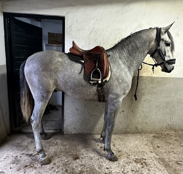 Three-and-a-half-year-old colt sired by Don Juan. Slightly backed on the lunge line, very gentle. He is the half-brother of Optimus, Portugal’s reigning champion in dressage from ages 4 to 7, and also of Nadal, the recent U25 Grand Prix champion. A colt with impressive movements, noble temperament, strength, and a good head. Descended from Opus72 and also carrying the best lines from Coimbra RX OK, available.