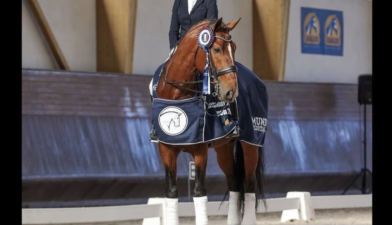 Potro de 3 años y medio hijo de Don Juan. Está un poco montado a la cuerda mucha nobleza. Es hermano de padre de Optimus campeón de Portugal de doma desde 4 a 7 años y tambien de Nadal reciente campeón U25 nivel Gran Premio. Un potro con grandes movimientos nobleza fuerza y buena cabeza. Descendiente de Opus72 también viene por las mejores líneas de Coimbra rx ok disponibles. Las dos ultimas fotos sus hermanos campeones.