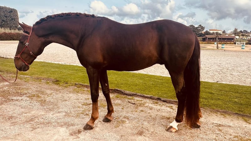 A very rare liver chestnut Lusitano 🥰 Obelix is a 7yro approved baroque Lusitano stallion with 170cm and piro free. I think he is the only Lusitano stallion with this colour and size. Obelix is like his name relative from the famous movies. A very gentle and sweet giant with a big heart, much patience and love. He is well trained and doing flying changes, canter pirouettes and lateral work. Piaffe started by hand and passage is started too. He can trot big too. He is for any kind of rider. A 13yro girl can ride him in Golega in a totally stressful situation with mares and other stallions and he is safe. This horse is a life insurance. An amateur or professional will enjoy this horse because he has good gaits and would be perfect for the dressage arena. His colour is very interesting. Some parts of his legs are more light and his mane is shimmering in a light red if it’s open in summer. Now in winter he becomes ebony dark. He has a long mane and much hair in general 😊 Obelix is approved for breeding and he is tested piro negative. He is something very special! Located in Portugal 🇵🇹 More informations over PM or WhatsApp +491786997334. Jasmin from Top-Lusitanos 🤗