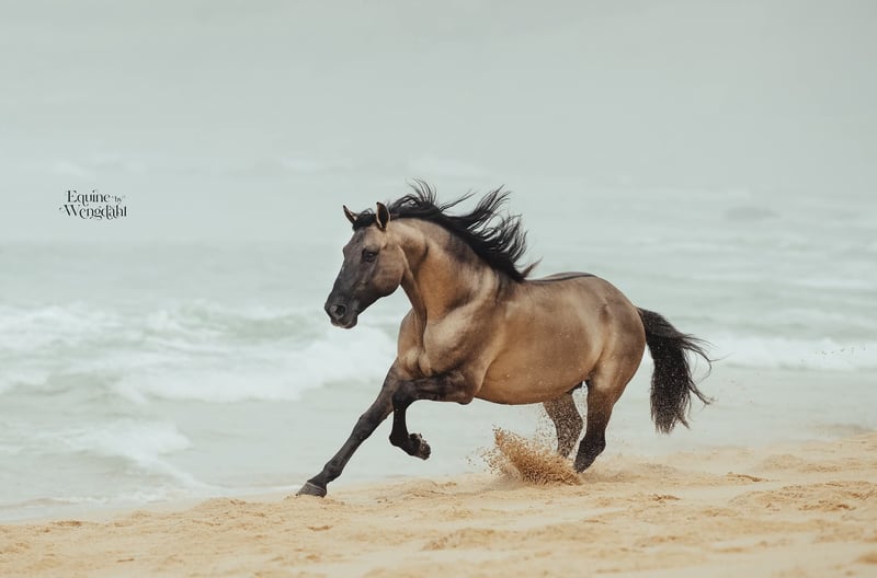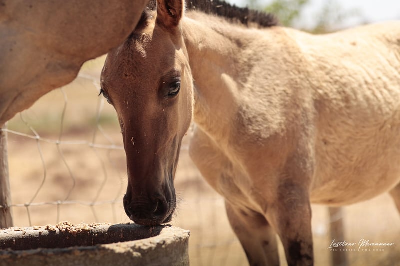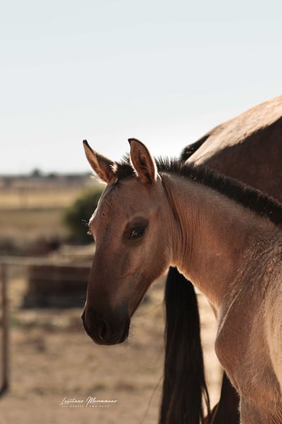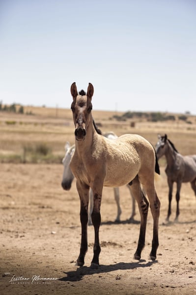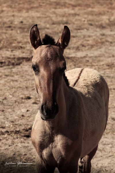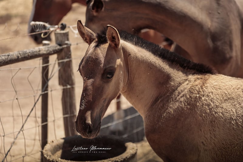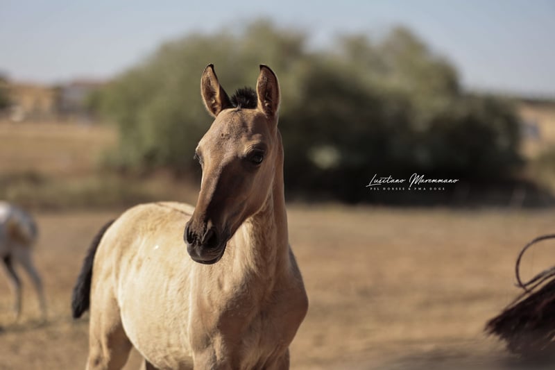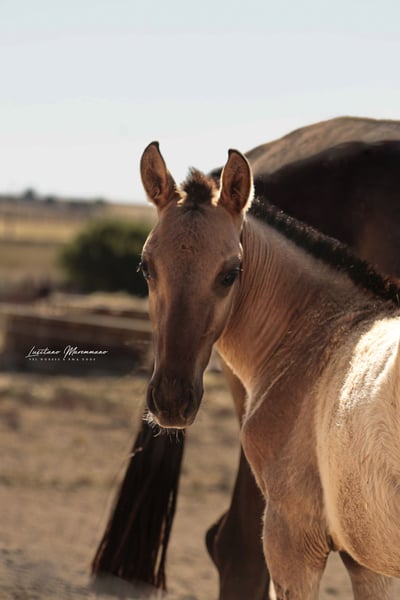 If you are a fan of genuine foal markings with wild patterns—such as eel stripes, zebra markings on the legs, shoulder crosses, and the very rare "cobwebbing" on the forehead—as well as the incredible Lusitano breed, our little Vicente might be just what you're looking for ;) He combines beauty, grace, and a kind, human-oriented character. Both of his parents are registered Lusitanos with the APSL; however, only his mother, Pandora FIC, is approved for breeding. His father, Nairobi FIC, is unlicensed, so Vicente receives the blue book of the "Raças Selectas" as a Cruzado. In the last two photos, you can see his father, Nairobi FIC (grullo/dun). If he is recognized as a stallion by the APSL in the future, Vicente will subsequently receive the APSL blue book, if desired. For more information about our adorable Vicente, please send us a personal message. We breed PSL/Lusitanos ourselves and also offer horses from other breeders here in Portugal. Our current sales horses can be found on Instagram: https://www.instagram.com/lusitanomaremmano?igsh=aTNkaXFma3RlYnJ1 We look forward to hearing from you :)