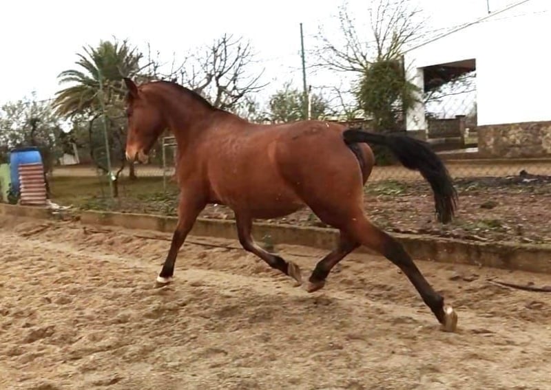 Elle se déplace de façon spectaculaire et possède un tempérament naturel et gentil que tous ses descendants ont toujours, ainsi qu'un excellent mouvement ! Elle est actuellement pleine d'un fils de Rico et accouchera en mai. Elle est bonne à tout faire sur le terrain mais elle n'a été utilisée que comme poulinière et n'a donc pas été débourrée. Tout est disponible à la visite si vous pouvez vous rendre sur place. Situé à Extremedura, Espagne. Expédition dans le monde entier possible, veuillez nous contacter pour un devis. Vendu sans poulain €6,600 ou £5,520 environ le jour de la vente ou. Vendu avec poulain €11,000 ou £9,200 environ le jour de la vente.
