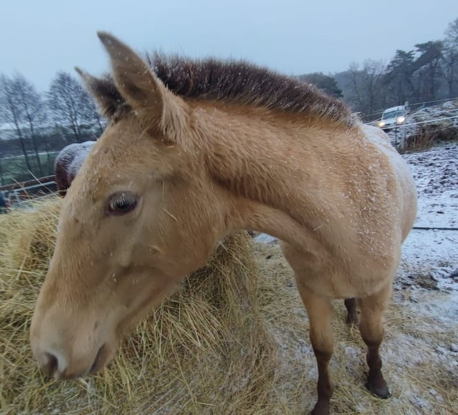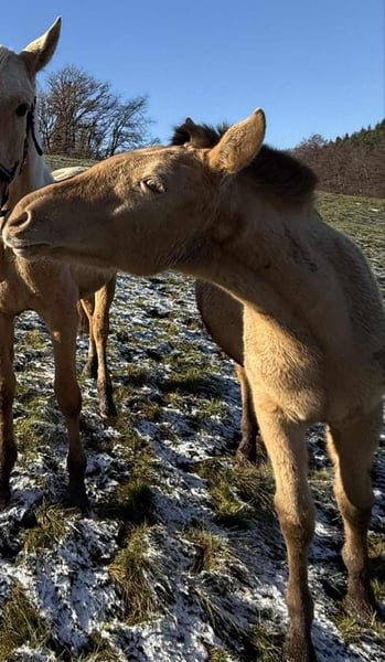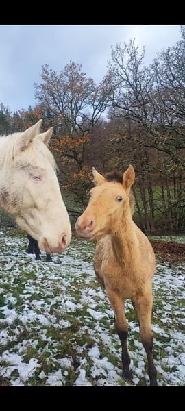 Soraya est tout simplement un rêve à tous égards. Elle a 10 mois et séduit non seulement par sa couleur exceptionnelle, mais aussi par son tempérament, son caractère est enchanté et unique. Elle est également très drôle :) Elle est incroyablement câline, connaît le licol et la manipulation des sabots, sinon elle n’a encore rien appris chez moi. Elle sort aussi facilement avec toi :) Elle te suit comme un chien (je dirais même en mieux). Lorsqu’on se tient devant elle, sa robe est unique, elle brille au soleil ! Son père est un étalon Isabel, et sa mère est également une jument Isabel. Son père est un Lusitanien avec un passeport, et sa mère est aussi une Lusi. Soraya a une crinière bicolore, elle n’est tondue que parce que je trouve cela joli et pratique lorsqu’elle est dehors dans la nature. Elle pousse maintenant rapidement, et très vite :) Elle a des yeux marron et quatre jambes foncées. Quand on l’appelle, elle vient immédiatement autour du coin. Elle adore jouer avec des congénères de son âge, ce que je souhaite également pour elle à l’avenir. Je préfère éviter une vie en box, elle connaît le plein air 24/7 avec d’autres chevaux et aime jouer. Je souhaite pour elle une famille de rêve où elle pourra rester longtemps. Malheureusement, je ne peux pas tous garder, car dès mars, les premiers poulains seront de nouveau nés. J’espère lui trouver une belle place. Même si cela me brise le cœur, je dois la confier. Soraya est simplement exceptionnelle à tous points de vue et deviendra un véritable eye-catcher. Le transport peut être organisé. D’autres photos et vidéos disponibles. Si vous cherchez une jument magnifique et exceptionnelle, elle est faite pour vous. Elle peut également être payée en 2 ou 3 fois (tant qu’elle reste ici jusqu’à ce qu’elle soit entièrement payée). Elle possède un passeport.