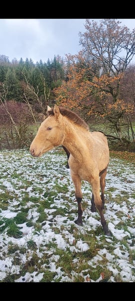 Soraya is simply a dream in every way. She is 10 months old and captivates not only with her extraordinary color but also with her charming and unique personality. She’s also quite funny! :) She is incredibly affectionate and well-handled; she knows halter and hoof handling, though she doesn’t need to be familiar with much else yet. She also walks out calmly with you :) She follows behind like a dog (I would even say better). When you stand in front of her, her coat color is truly unique; she shimmers beautifully in the sun! Her sire is an Isabel stallion, and her dam is also an Isabel mare. Her sire is a Lusitano with a passport, and her dam is also a Lusitano mare. Soraya has a two-tone mane; I’ve only clipped it because I find it beautiful and practical when she’s outdoors in nature. She’s growing quickly and steadily :) She has brown eyes and four dark legs. When called, she comes immediately around the corner. She loves playing with her peers and I hope she’ll have the same in her future. Please no box stall housing; she’s used to being outside 24/7 with other horses and playing freely. I wish her a dream home where she can stay long-term. Unfortunately, I cannot keep all of them, as the first foals will be born again in March. I hope to find her a wonderful new home. It will be hard for me to part with her, but I must let her go. Soraya is simply special in every way and will surely be a real eye-catcher. Transport can be arranged. More photos and videos available. If you’re looking for a stunning and truly exceptional mare, she’s the perfect choice. Payment can be made in 2 or 3 installments (as long as she remains here until fully paid). She has a passport.