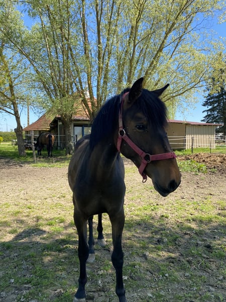 Uva pouliche pur sang lusitanienne PP née le 27/04/2024,bai, très bon mental, proche de l’humain,facile à la manipulation et est en ordre de tout; Elle a un physique plutot sportif et elle devrait faire à l'âge adulte 1,55-1,60m. Elle montre des allures plutot aériennes avec un trot de très bonne qualité! 🟢 Papiers en ordre stud-book PT & FR et IFCE 🟢 Sa mère est visible chez nous et j'ai des photos de son père et d'un demi-frère 🟢 Possibilité de transport & de la conserver à l'élevage avec nos autres juments jusqu'à l'âge de son débourrage à tarif intéressant Tarif actuel : 8000 TTC
