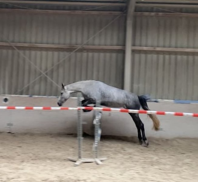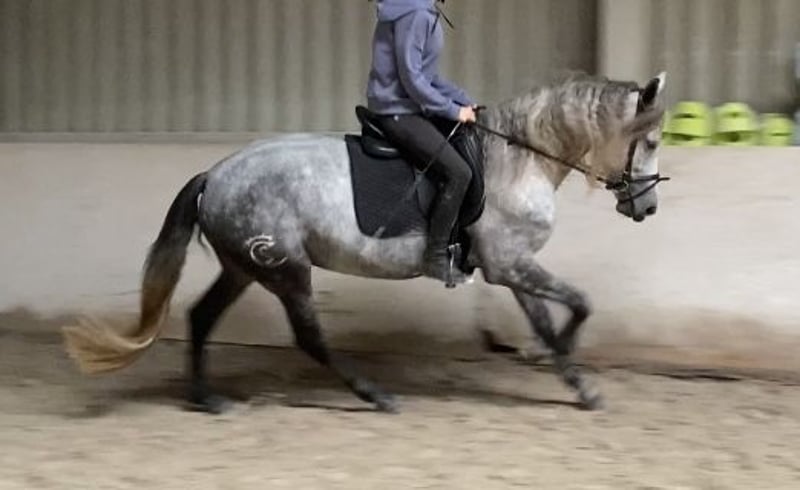 Unsere beeindruckende Warlander-Stute Amadea (Lusitano × Friese) sucht ihr passendes Zuhause. AUFGRUND VON PLATZMANGEL AN SCHNELLENTSCHLOSSENE WEIT UNTER WERT ! Amadea ist 5 Jahre alt, ca. 1,60 m groß und begeistert mit ihrem eleganten Auftreten, ihrem sanften Wesen und ihrem schönen Exterieur. Sie ist solide angeritten und zeigt sich unter dem Reiter stets freundlich, lernwillig und bemüht. Auch vom Boden aus arbeitet sie aufmerksam mit – kennt Longenarbeit, Stangenarbeit und leichte Freiarbeit. Ihre harmonische Ausstrahlung macht sie zu einem echten Blickfang. Im täglichen Umgang ist Amadea brav, verschmust und absolut verlässlich. Sie lässt sich problemlos führen, putzen, verladen und steht ruhig beim Schmied. In der Herde zeigt sie sich sozial und ausgeglichen. Amadea ist barhuf, ekzem- und hustefrei, herdentauglich sowie verladefromm und verfügt über einen aktuellen TÜV inkl. Rücken & HWS. Durch ihr freundliches und gelassenes Wesen wäre sie auch für Freizeit, Familie oder kleineren Schulbetrieb gut vorstellbar. Mit weiterer Ausbildung bietet sie viel Potenzial für die Zukunft. Videos auf Anfrage Transport & Onlinekauf nach Video möglich