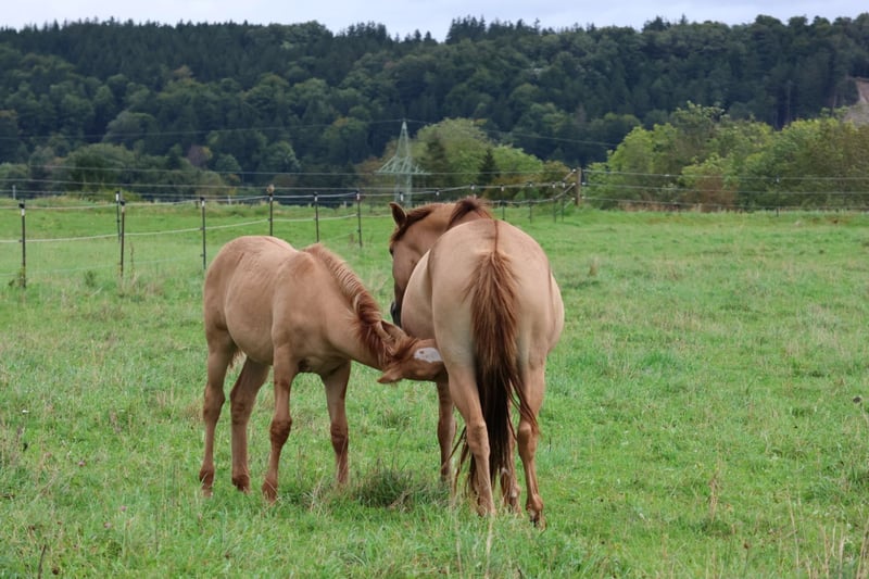 Quā Born May 10, 2020 15.2 hh Red Dun This color is very rare in Lusitano breeding. The Dun gene is a genetic diluting factor that lightens the coat color and often produces wild markings such as a dark dorsal stripe, zebra stripes on the legs, and a shoulder cross. In German, this color is referred to as "Rotfalbe." Quā was transferred directly from her breeder to us at the age of 2. She grew up in a herd and is still kept with the herd here. During summer, she spends 24 hours a day on pasture, and in winter, she is kept in an open stable with turnout. She is also familiar with a box stall. At 4 years old, she was backed for three months. Very slowly and with a lot of horse sense, she was gradually introduced to riding. Since then, she has not been ridden, as she was covered and is expecting her first foal in 2025! During her backing phase, she was well-behaved and gentle. She loves human interaction and enjoys being handled. This is also the reason why I am offering her for sale — she is underchallenged with the other broodmares on the pasture. She would like to work more. She is very people-oriented. She is accustomed to loading, stands well for mounting, and is well-behaved during riding. She is calm when having her hooves trimmed. She has been regularly dewormed and fed with mineral supplements. She is not suitable for beginners, as she is not yet a seasoned riding horse. This is not an emergency sale! Quā will only go to the right person. For questions, please feel free to call. Lusitano-via-Claudia.de