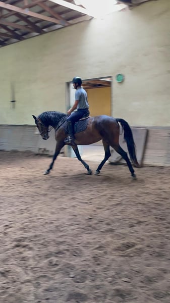 Beautiful large mare with a lot of talent For sale is an impressive Lusitano mare, born in 2019. With her elegant appearance and a height of 1.69 m, she is not only a real eye-catcher but also a true talent. Features: - Breed: Lusitano - Gender: Mare - Year of Birth: 2019 - Color: Bay - Height: 1.69 m This mare impresses with her charming character and willingness to learn. She is versatile and suitable for both leisure and competition riding. Her movements are smooth and expressive, making her an excellent partner for ambitious riders. PRADA also has a very kind character, which makes her a reliable horse. She passes this trait on to her offspring. This character combined with a very good pedigree (SPARTACUS X UNIVERSO II) makes her a truly exceptional mare. She has already had two wonderful foals and can be ridden by beginners in all three basic gaits. I can gladly provide more pictures and videos if interested.
