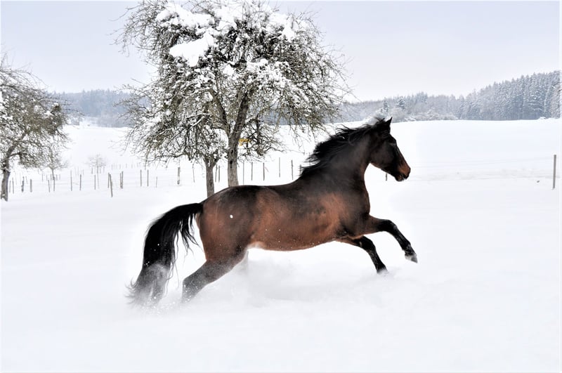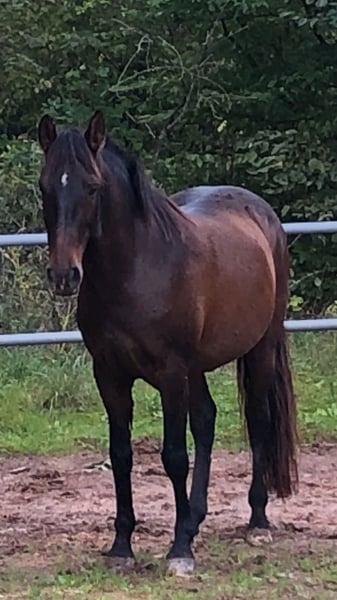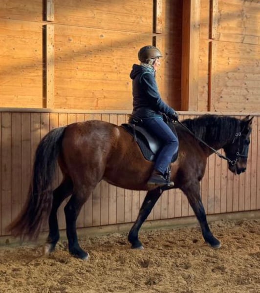 Fandango, Lusitano ohne Papiere (Cruzado), 10 Jahre, Stockmaß 154. Ich habe ihn mit 5 J gekauft. Wir haben einiges gemeinsam erlebt. Fandango ist vom Charakter: lieb, zugewandt und bezogen, intelligent und aufgeweckt, sensibel und feinnervig, einerseits coole Socke, andererseits noch unsicher im Gelände, er will alles recht machen - auch über seine Schmerzgrenze hinaus, er mag keinen Druck oder zu viel Energie, er kommt gut alleine klar, blüht auf in guter Gesellschaft, ist sehr verspielt und neckt gerne, ohne andere Pferde zu verletzen, ist oral aktiv (schnabelt gerne an allem herum), tanzt gerne (ist wendig und spielerisch in seinen Bewegungen). Fandango ist sehr bezogen auf seinen Menschen, daher nicht geeignet für mehrere Reiter. Kein Gewichtsträger. Gut gearbeitet am Boden, weniger vom Sattel aus. Er hat superweiche Gänge und reagiert fein auf Hilfen. Er ist unverbraucht, weil schonend und liebevoll gearbeitet. Aus verschiedenen Gründen mussten wir immer wieder Trainingspausen einlegen und jeweils neu beginnen. Gelände kennt er als Handpferd, von vielen Spaziergängen und einigen Ausritten. In Begleitung eines sicheren Pferdes ist er cool, alleine jedoch noch unsicher. Im Winter 2024/2025 ist er an equinem Asthma erkrankt aufgrund von schlechter Heuqualität (Staub und Schimmelpilz). Inzwischen sehr gut regeneriert, aber noch nicht wieder in super Kondition (näheres persönlich). Aufgrund der Erkrankung und daraus resultierender Stallwechsel wurde er knapp ein Jahr lang nicht geritten. Seit Januar reite ich ihn wieder. Ausbildungsstand entsprechend angeritten. Gerne im persönlichen Gespräch mehr Informationen dazu. Ich wünsche mir für ihn einen lieben und verantwortungsvollen Menschen mit reiterlichem Können und Erfahrung, der ihn weiter ausbildet und ihm einen festen und sicheren Platz in seinem Leben gibt. Idealerweise mit Privatpferdehaltung, da es dort möglich ist, auf die individuellen Bedürfnisse einzugehen. Offenstall und stabiler Herdenverband, viel Auslauf und Platz zum Spielen. Er ist eher rangniedrig und gliedert sich unkompliziert in eine neue Herde ein. Schön wäre auch eine naturnahe Haltung, in der er einfach Pferd sein darf und nicht geritten wird. Fandango wurde erst mit 5 Jahren gelegt und springt auf, weshalb eine gemischte Herde nicht zu empfehlen ist. Ich gebe ihn aufgrund der aktuellen gesundheitlichen Situation unter Wert ab. Platz vor Preis in allerbeste Hände.