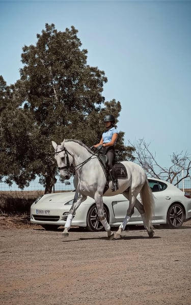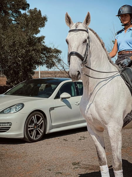 Lusitano ruin geboren in 2013. Een paard met een uitzonderlijke, witte vacht en een indrukwekkende hoogte van 167 cm. Een uitstekende partner voor dressuur, momenteel op niveau C. Röntgenfoto's zijn beschikbaar voor inzage. Neem gerust contact op voor meer informatie.