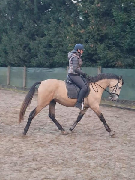 💫 Race : Pur-sang Lusitanien 🇵🇹 💫 Sexe : hongre 💫 Année de naissance : 2022 elevage Français Gari Zoher. A vecu au pré puis debourré en ete 2025 💫 Taille : 1,57 m (susceptible d’atteindre 1,60–1,62 m) 💫 Papiers : Oui origines Piton ~ Novilheiro / Universo / Príncipe JHC Il réunit toutes les qualités pour une magnifique relation partenaire–cavalier : 💫 Monte dans le camion et le van calmement, très facile à charger (testé même sur une aire d’autoroute!) 💫 Sûr et détendu en extérieur il part seul et franchis aisément les troncs au pas ou autres obstacles sont se poser de questions. 💫 Fin et agréable sous la selle. Quand il est monté, il reste calme ; les transitions sont fluides, le contact est stable et le cadre constant. Il possede une belle cadence. 💫 Son galop est exceptionnel : équilibré et régulier 💫 Trot et pas bien articulés et ample 💫 Honnête, curieux, avec beaucoup de présence et une grande confiance, où que vous l’emmeniez 💫 Idéal pour Working Equitation, Dressage, et potentiel PSG++ 💫 N'a pas de comportement agaçant. Il est respectueux en main et en longe il est attentif et concentré dans le travail. 💫 visite check a 2 ans. Visite veto lors de l'achat faite par l'acheteur. ▶️ Budget conséquent en vu du potentiel pour l'équitation sportive et de compétition