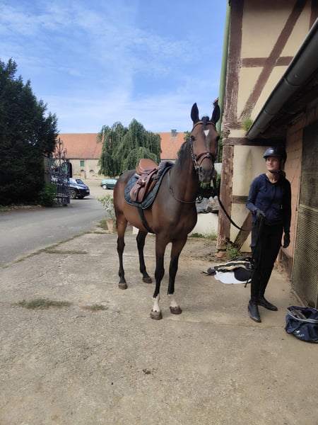 Ce jeune Lusitanien impressionne non seulement par son apparence noble, mais aussi par son caractère merveilleux. Avec ses 1,54 m actuellement, il est encore en pleine croissance et se développe à merveille – jour après jour, il montre davantage d’expression, de puissance et de présence. Il convainc par ses trois allures fondamentales, fluides et expressives, par sa tête claire et par une remarquable stabilité nerveuse. Malgré son jeune âge, il est agréablement chaud, jamais survolté, et c’est simplement un cheval qui prend plaisir à travailler en compagnie de son cavalier. Sa tête doit encore mûrir un peu et il doit accumuler de la routine, mais c’est justement ce qui fait de lui un partenaire passionnant avec un grand potentiel de développement. Sa silhouette compacte, harmonieuse, et sa capacité naturelle à se rassembler en font le candidat idéal pour la dressage ou la Working Equitation. Il montre également un grand talent et un enthousiasme pour le travail en liberté et les exercices de cirque – il adore interagir avec son humain, porter des objets et découvrir de nouvelles tâches. Dans le box, c’est le clown au grand cœur, joueur, proche de l’humain et toujours amical. Il est soigné, régulièrement présenté au maréchal-ferrant, vermifugé et bien entendu vacciné. Un examen clinique récent peut être effectué sur demande. Ce Lusitanien est un véritable coup de cœur – avec son charme, ses mouvements et sa personnalité. Un diamant brut qui pourra devenir un véritable cheval de rêve pour la compétition. 💫 Spirit vous a séduit ? Je serai ravie de recevoir votre appel ou message ! Pour mieux connaître votre cheval idéal, n’hésitez pas à prendre le temps de séjourner dans notre belle région autour du lac d’Eder, et à combiner votre voyage avec un petit séjour. Pour découvrir et essayer le cheval, un tarif de 50 € par jour et par cheval s’applique, qui sera déduit en cas d’achat. Votre cheval idéal n’est pas encore dans mon annonce ? Je peux le trouver pour vous ! Plus d’informations sur www.deinspanischespferd.de. J’ai hâte de vous rencontrer !