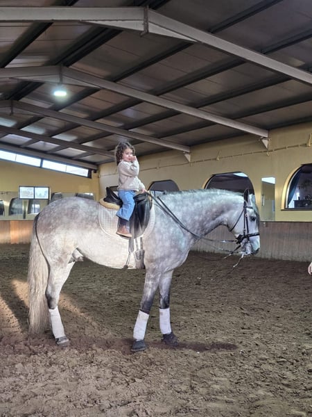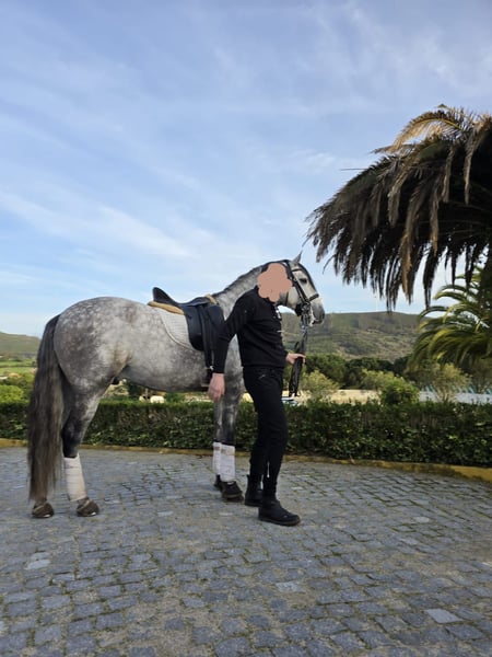 For sale: a beautiful Lusitano gelding born in 2020. This grey horse stands at 16.5 hands and is ideally suited for working equitation. He is the perfect partner for an experienced rider seeking a versatile horse with an elegant appearance and high-quality movement. Please contact me for more information and to arrange a viewing.