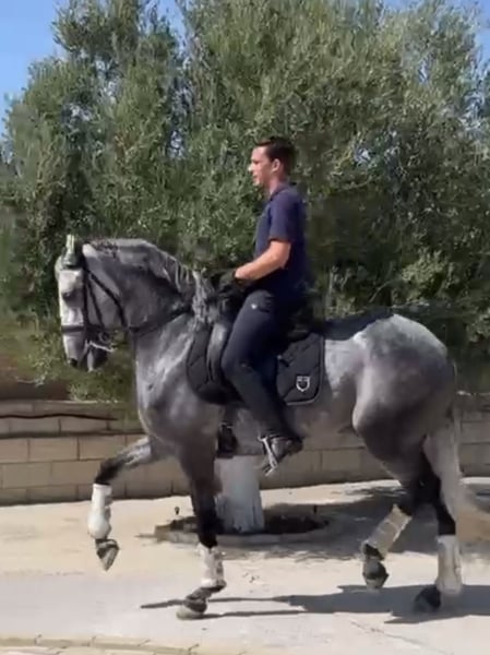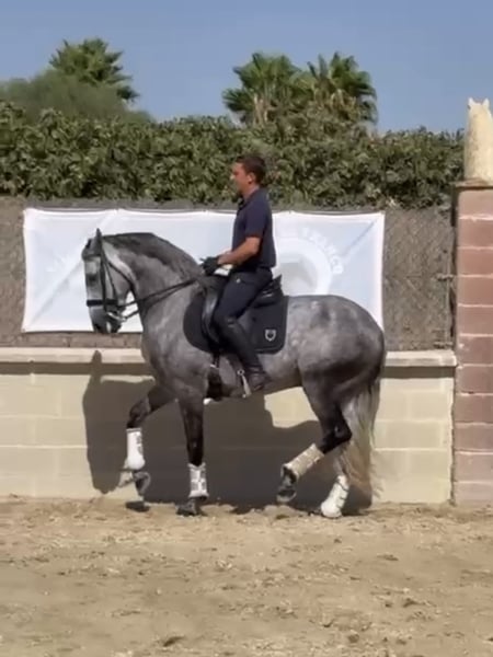 Octavio, PSL Wallach, geboren 2018 und ca. 164 cm groß. Wunderschönes Pferd mit hervorragender Reitbarkeit und süßem Wesen. Sehr gute Bewegungen und viel Qualität in allen fortgeschrittenen Übungen. Beherrscht alle Seitwärtsübungen, fliegende Wechsel in Serie, Galopp-Pirouetten sowie beeindruckenden Piaffe und Passage. Röntgenbilder sind verfügbar und er ist piro negativ. Octavio befindet sich im Süden Spaniens und wir helfen bei allen Schritten im Kaufprozess. Erfahren Sie mehr über uns unter www.cthorsesales.com Kontakt: info@cthorsesales.com