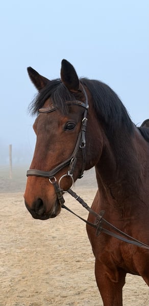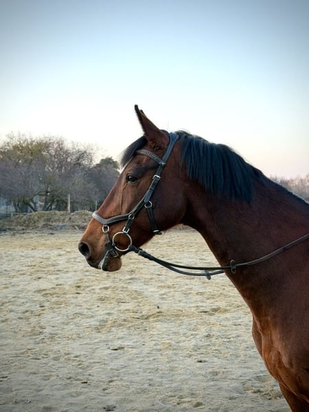 Korynt to koń o fajnym charakterze, przyjacielski, bezproblemowy w obejściu. Fajny lekki ruch. Lubi skakać, współpracujący z człowiekiem. W terenie bezproblemowy. Zdrowy, nigdy mu nic nie było. Nie kulał, nie kaszlał. Regularnie werkowany. W transporcie bezproblemowy.