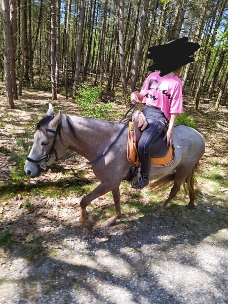 A curious and gentle horse with plenty of potential. Started under saddle at age three and has already been on several outdoor rides. Currently for sale due to lack of time. Not suitable for beginners. Small but lovely, and very inquisitive. Flat gait, making it ideal for riders with back problems.