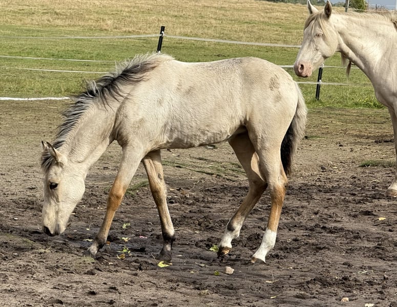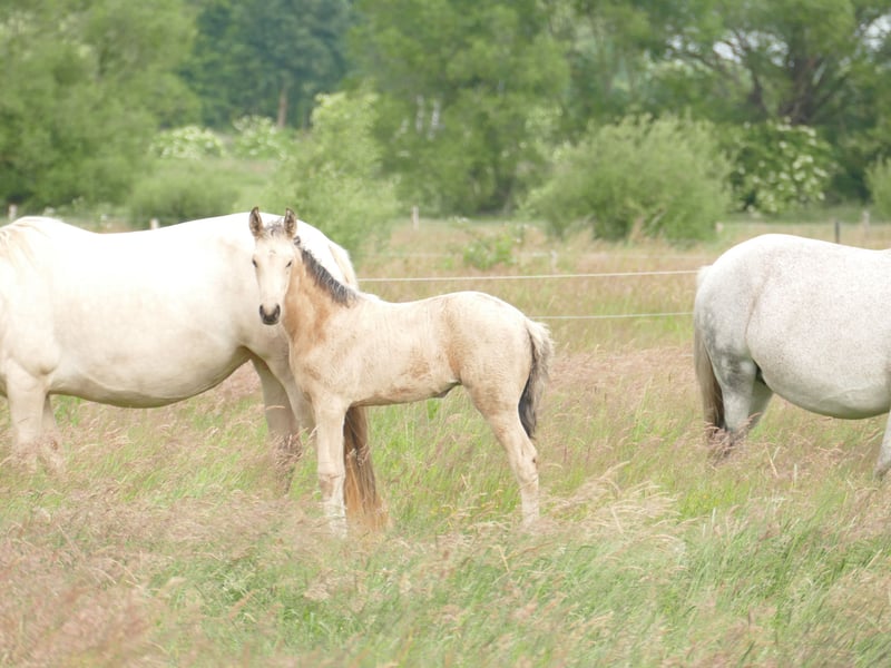 Gwenda von Hartungshof geb.am: 16.04.2025 ist eine wunderhübsche, gangstarke (Marcha Batida und Marcha Picada) Mangalarga Marchador Jungstute. Sie ist sehr Menschen bezogen und zeigte sich kooperativ beim lernen des Fohlen ABCs (halftern lassen, um Mama rundum geführt werden, Hufe geben). Inzwischen abgesetzt lebt sie in einer fast 20-köpfigen, gemischten Gruppe zusammen mit anderen Fohlen, Jährlingen, 2-jährigen und erwachsenen Pferden im Offenstall, auf dem Paddock und auf einer großen Weide. Gwenda wurde bereits 2 x gegen Tetanus und Influenza und 1 x gegen Herpes geimpft, außerdem wurde sie regelmäßig entwurmt und auch Hufbearbeitung ist kein Fremdwort für sie. Dass es nicht besonders viele Bilder und nur ein Video von ihr gibt, liegt an meinem eigenen gesundheitlichen Zustand in 2025.