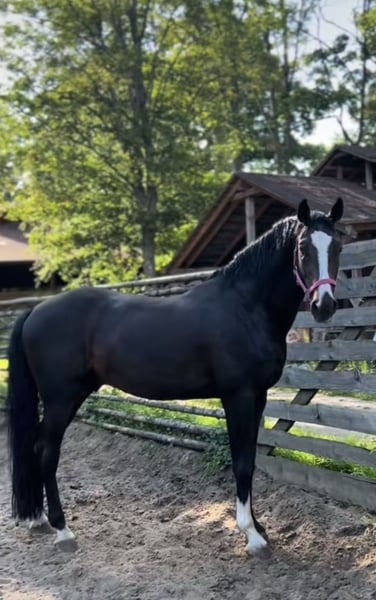 Piękny ogier z ogromnym potencjałem bierze udział w zawodach z dobrymi wynikami na poziomie 130cm , bardzo ładny ruch , wyjątkowo urodziwy i grzeczny