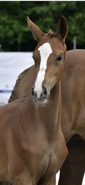 For Sale: Mecklenburg Warmblood Mare Reserves Champion at the Championship Up for sale is a promising Mecklenburg Warmblood mare, born in 2025. This elegant chestnut mare impresses not only with her striking color but also with her excellent potential in dressage. **Features:** - Breed: Mecklenburg Warmblood - Gender: Mare - Year of Birth: 2025 - Color: Chestnut - Suitability: Dressage The mare already demonstrates promising talent. She is well-behaved and has a friendly temperament. Please feel free to contact me for more information or if you are interested.