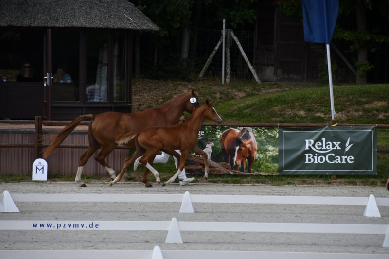**Verkaufsanzeige: Mecklenburger Warmblut Stute** Reservesiegerin beim Championat Zum Verkauf steht eine vielversprechende Mecklenburger Warmblut Stute, geboren im Jahr 2025. Diese elegante Fuchsstute überzeugt nicht nur durch ihre ansprechende Farbe, sondern auch durch ihr hervorragendes Potenzial im Dressursport. **Merkmale:** - Rasse: Mecklenburger Warmblut - Geschlecht: Stute - Geburtsjahr: 2025 - Farbe: Fuchs - Eignung: Dressur Die Stute zeigt bereits jetzt ein vielversprechendes Talent. Sie ist gut erzogen und hat einen freundlichen Charakter Bei Interesse oder für weitere Informationen stehe ich Ihnen gerne zur Verfügung.