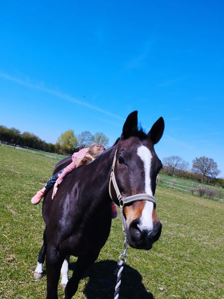 Milly ist eine 19 jährige, treue Seele und hat einen unbezahlbaren Charakter. Sie lebt bei uns als volles Familienmitglied und ist auch sehr auf unsere Kinder fixiert. Ich trenne mich nur schweren Herzens und nach sehr langer Überlegung, aus privaten Gründen von ihr. Sie eignet sich super als Familienpferd, Freizeitpferd oder auch zum Wiedereinstiegs-/Anfängerpferd. Wenn Milly einmal Vertrauen zum Reiter gefasst hat, macht sie fast alles mit. Sie geht alle Gangarten brav im Gelände und auf dem Platz - sowohl alleine, als auch in der Gruppe - , sie ist außerdem absolut schmiede- und verladefromm. In der Herde ist sie auch sehr sozial und bisher haben wir noch kein Pferd kennengelernt, mit dem sie sich nicht verstanden hat. Wir haben Milly zu Coronazeiten aus einem Schulpferdebetrieb übernommen, in dem sie einige Jahre sehr treu und brav vielen Kindern und Erwachsenen das Reiten beigebracht hat. Aufgrund eines Sehnenschadens wurde sie dort verkauft. Der wurde bei uns komplett auskuriert und sie ist seit dem bei uns im vollen Freizeitberitt. Ursprünglich war sie als Zuchtstute gedacht und wurde mit der Staatsprämie gekört und hat ein gesundes Fohlen zur Welt gebracht. Sie wird nur in aller beste Hände abgegeben und auch nicht nach dem ersten Kontakt mitgenommen. Ein Schulpferdebetrieb kommt nicht in Frage. Bei ernsthaften Interesse,ist ein Probereiten jederzeit möglich. Platz vor Preis.